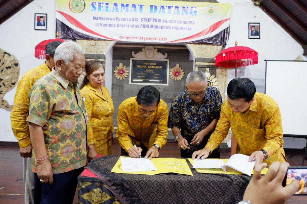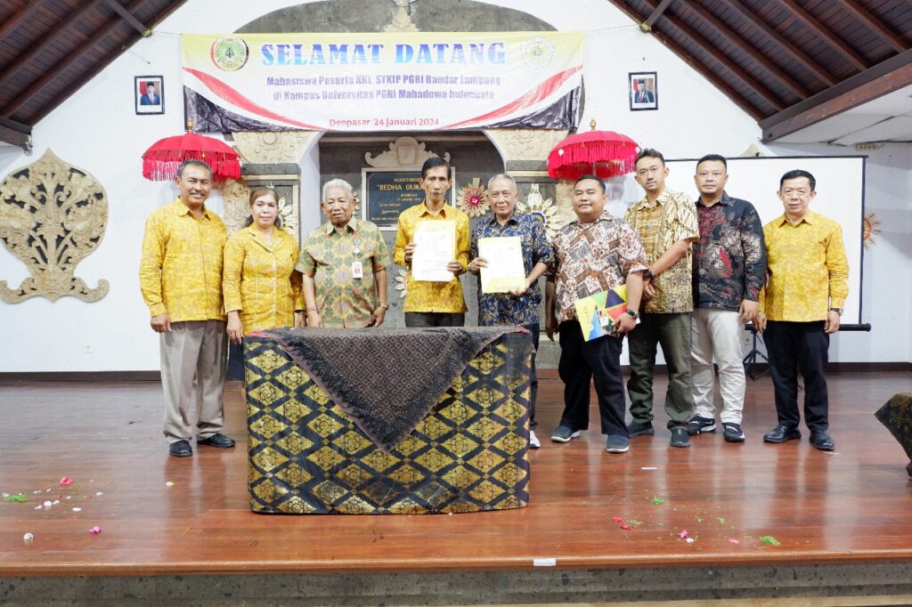 Bandar Lampung 24 Januari 2024 – Dosen dan Mahasiswa PGSD STKIP PGRI Bandar Lampung hadir dalam kegiatan Kunjungan Kampus Universitas PGRI Mahadewa Indonesia, Dalam Kegiatan tersebut menandatangani kerja sama strategis