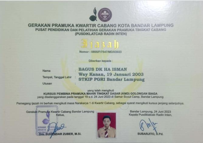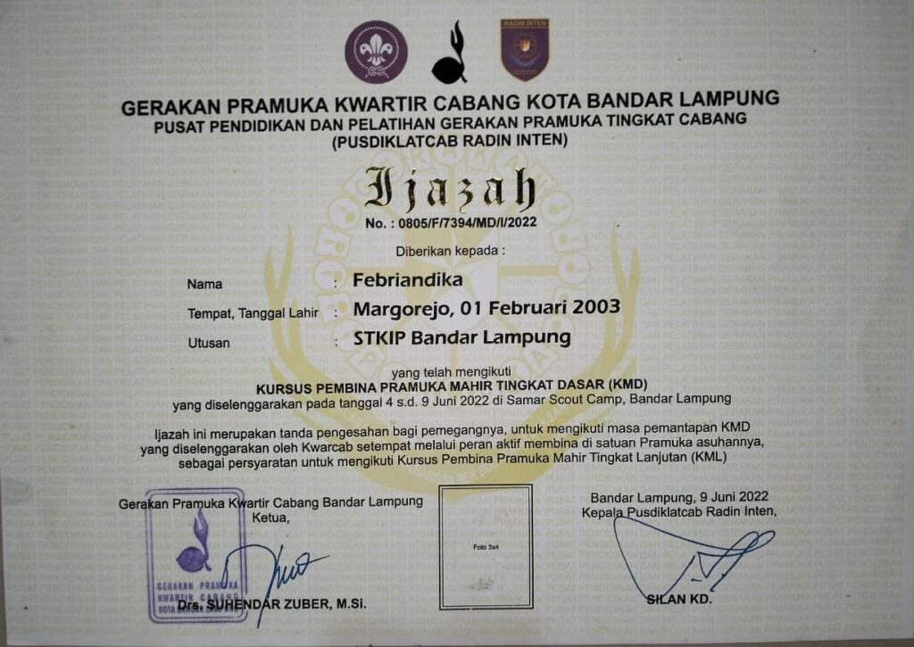 Kegiatan Kursus Mahir Dasar (KMD) Pramuka tahun 2021 yang ke – 1